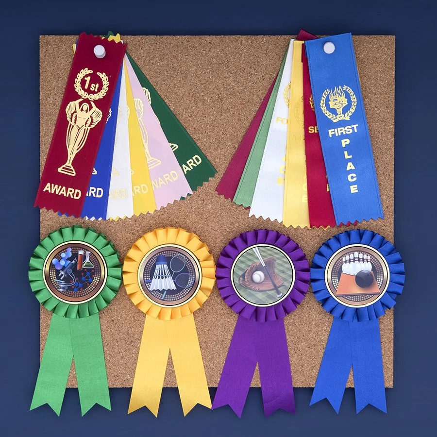 Perfect for science fairs or kids' sporting events and contests, these ribbons come in different design and colors.